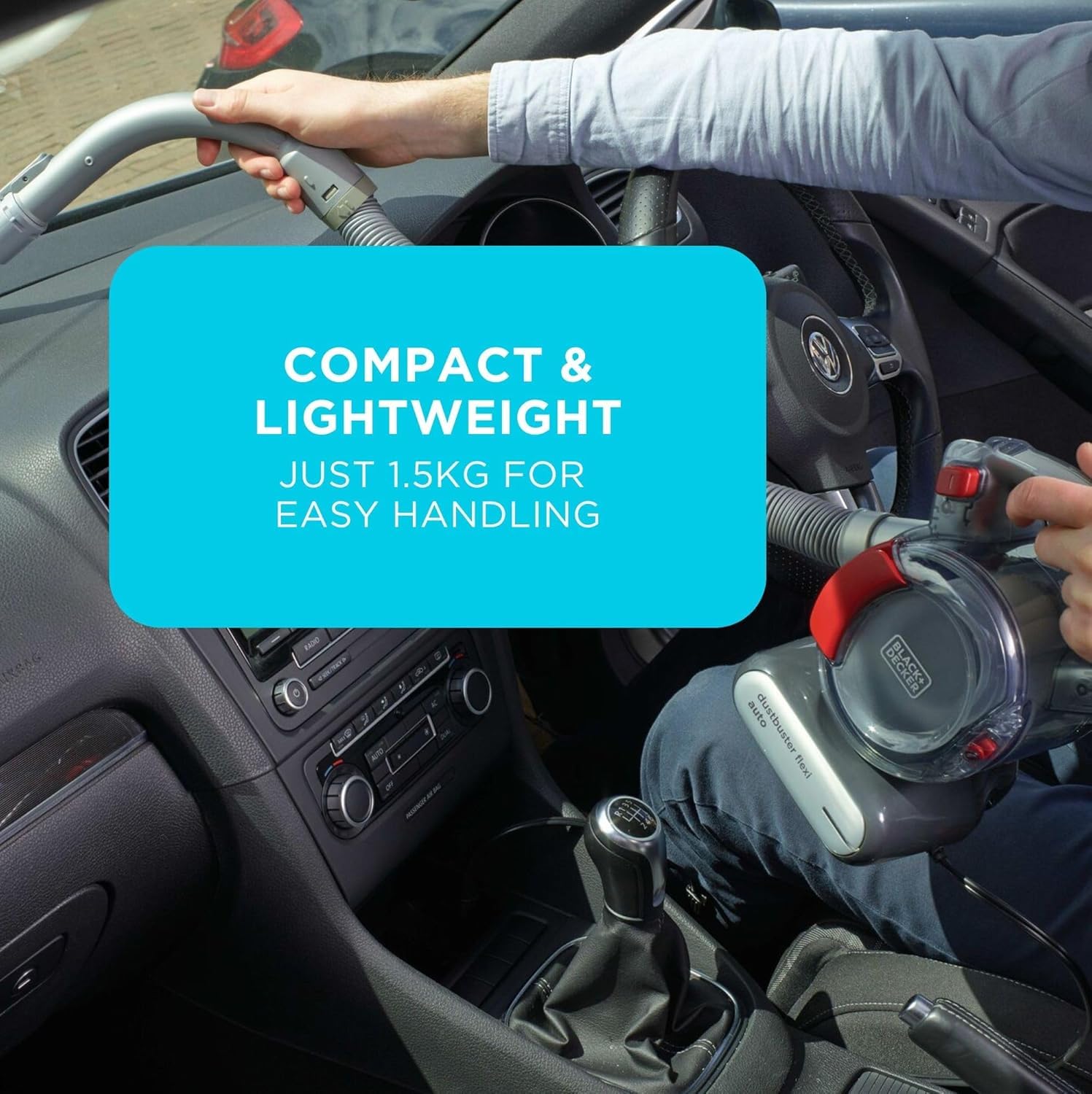 Keep your car interiors spotless with the Black+Decker PD1200AV-B1 Flexi Car Vacuum Cleaner. Featuring a flexible hose and compact design, it offers powerful suction for cleaning every corner with ease. Its 12V adapter connects directly to your car’s cigarette lighter, making it convenient for on-the-go use. Available at Tools Warehouse, this vacuum cleaner is perfect for maintaining a clean and fresh car interior.