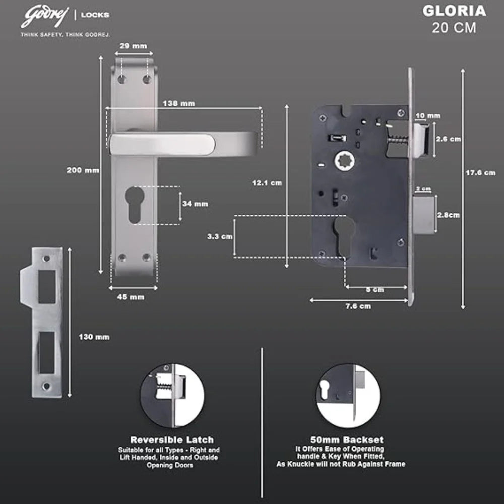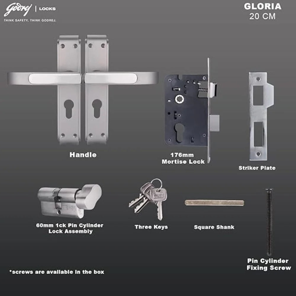 GLORIA 200mm Door Handle Set 1CK with Victor Cylinder – Satin Steel (3130) - Satin Steel is backordered and will ship as soon as it is back in stock.