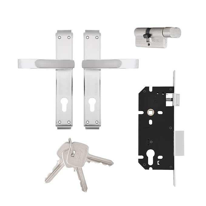 GLORIA 240mm Door Handle Set 1CK with Victor Cylinder – Satin Steel (3126)