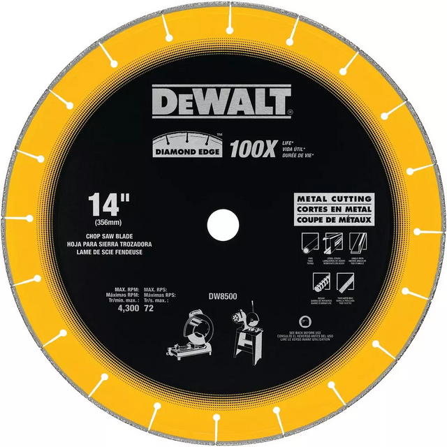 - Diamond Edge provides 100x the life vs standard DEWALT chop saw wheel
